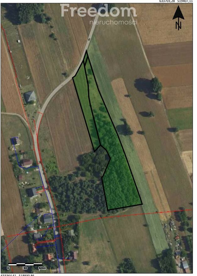 11 287 m² terenu z dostępem do drogi gminnej, mediami w pobliżu i